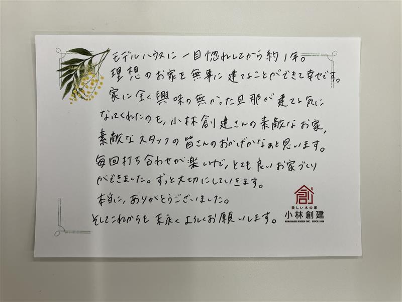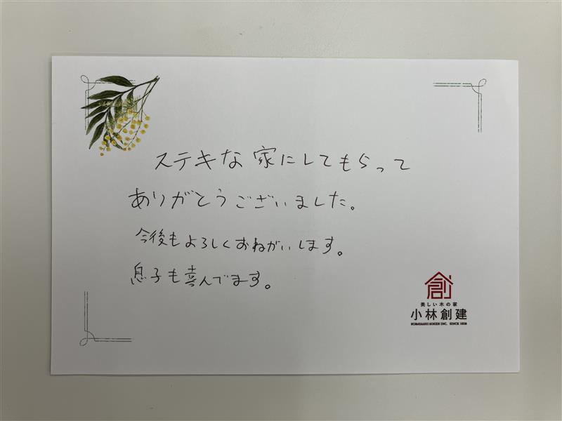 ステキな家にしてもらってありがとうございました。今後もよろしくおねがいします。
