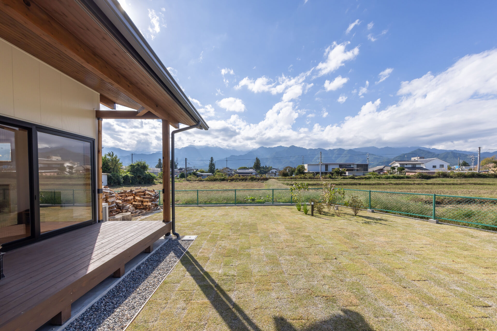 当初は必要性を感じなかったウッドデッキだが、標準仕様なので設置することに。「暮らし始めると、取り入れて大正解。特に夏はお風呂上りにビールを飲んだり、ボーッと山を眺めたり、よくここで過ごしていました。北側なので夏の日差しを避けられるのも利点です」
