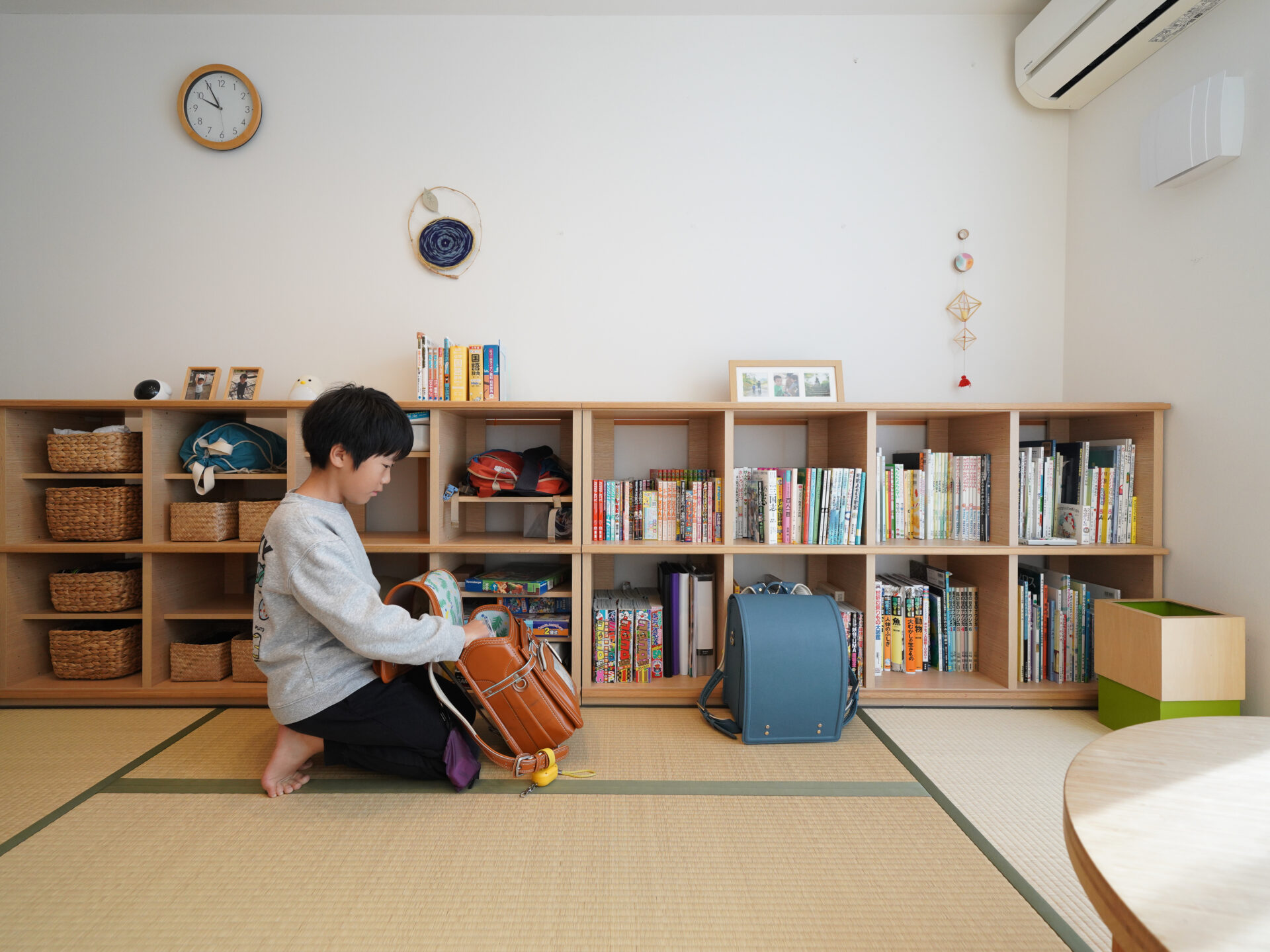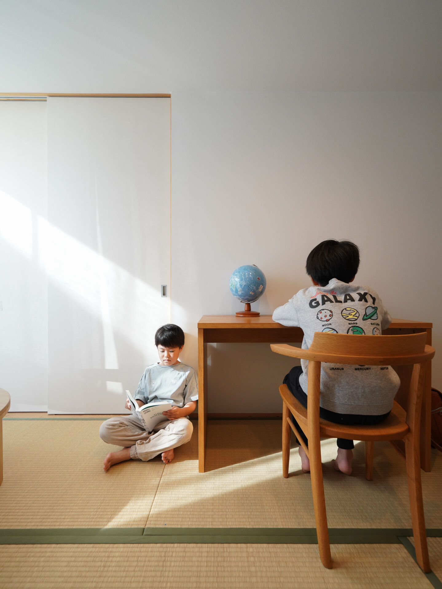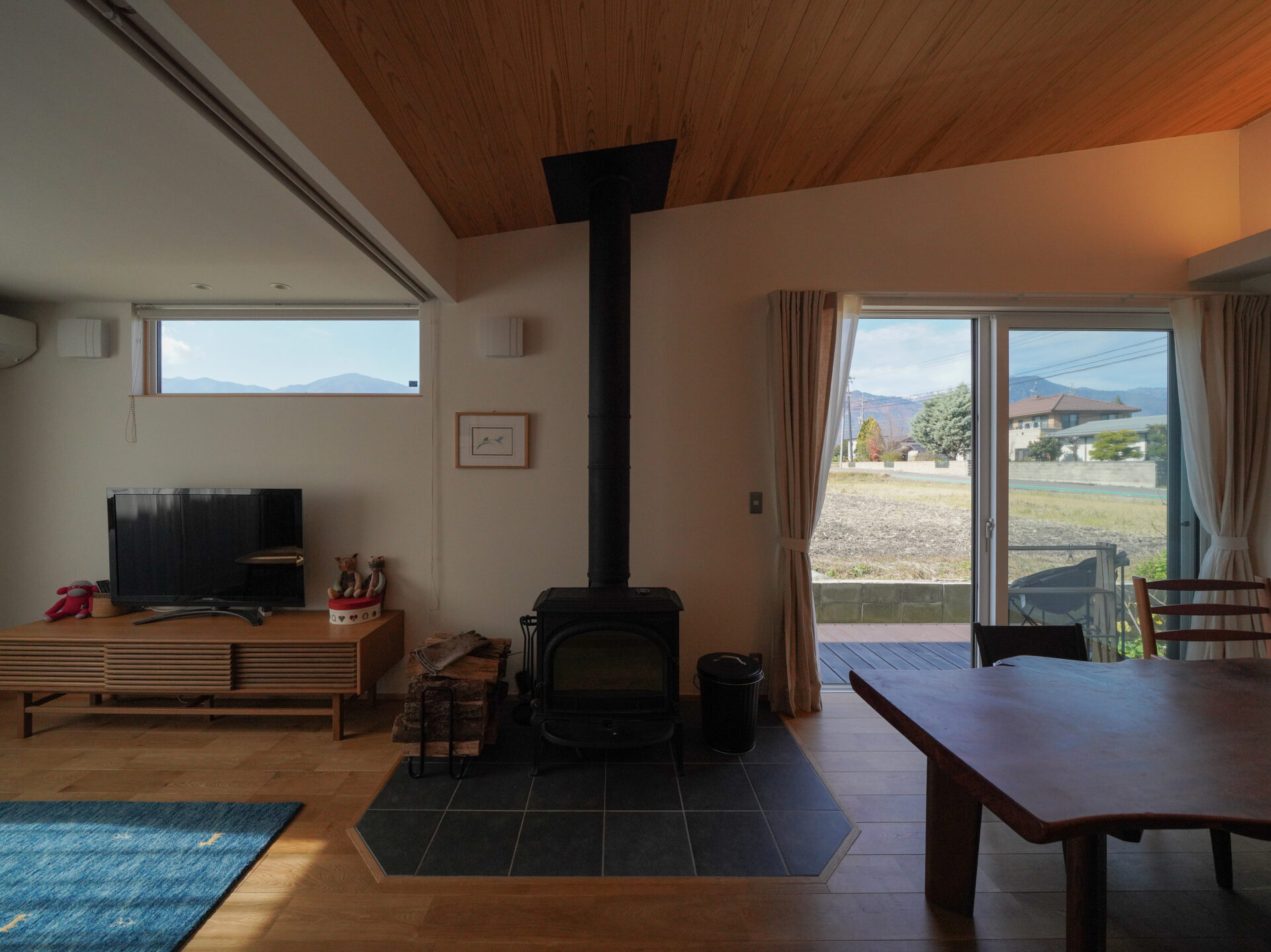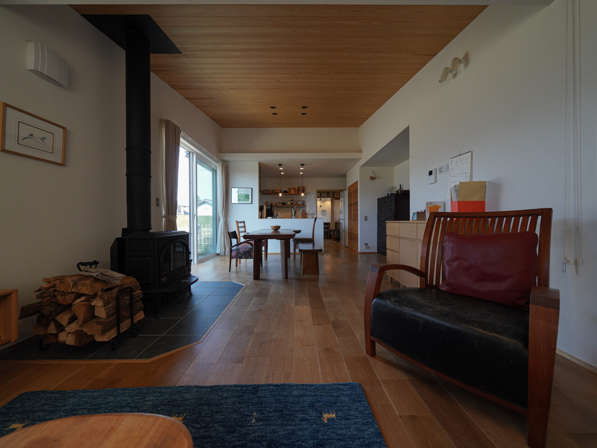 N邸に入って驚いたのは、11月中旬の取材だったにも関わらず、お子さんたちが裸足で家中を走り回っていたこと。「以前の家も断熱性は高かったけれど、ここはそれ以上に感じます。リビングのエアコン1台で家中暖かい。薪ストーブを焚くのは真冬にとっておきます」とNさん。