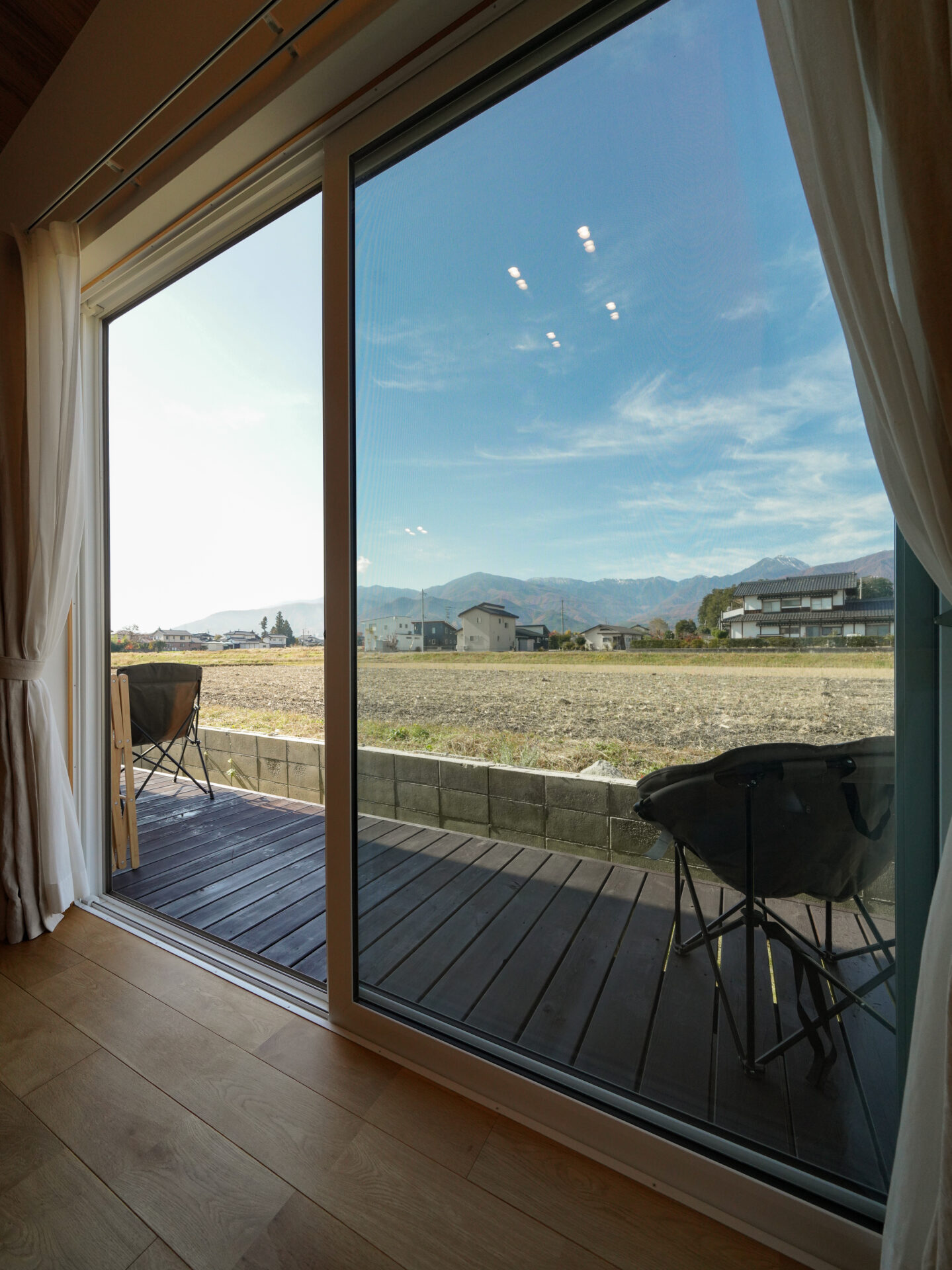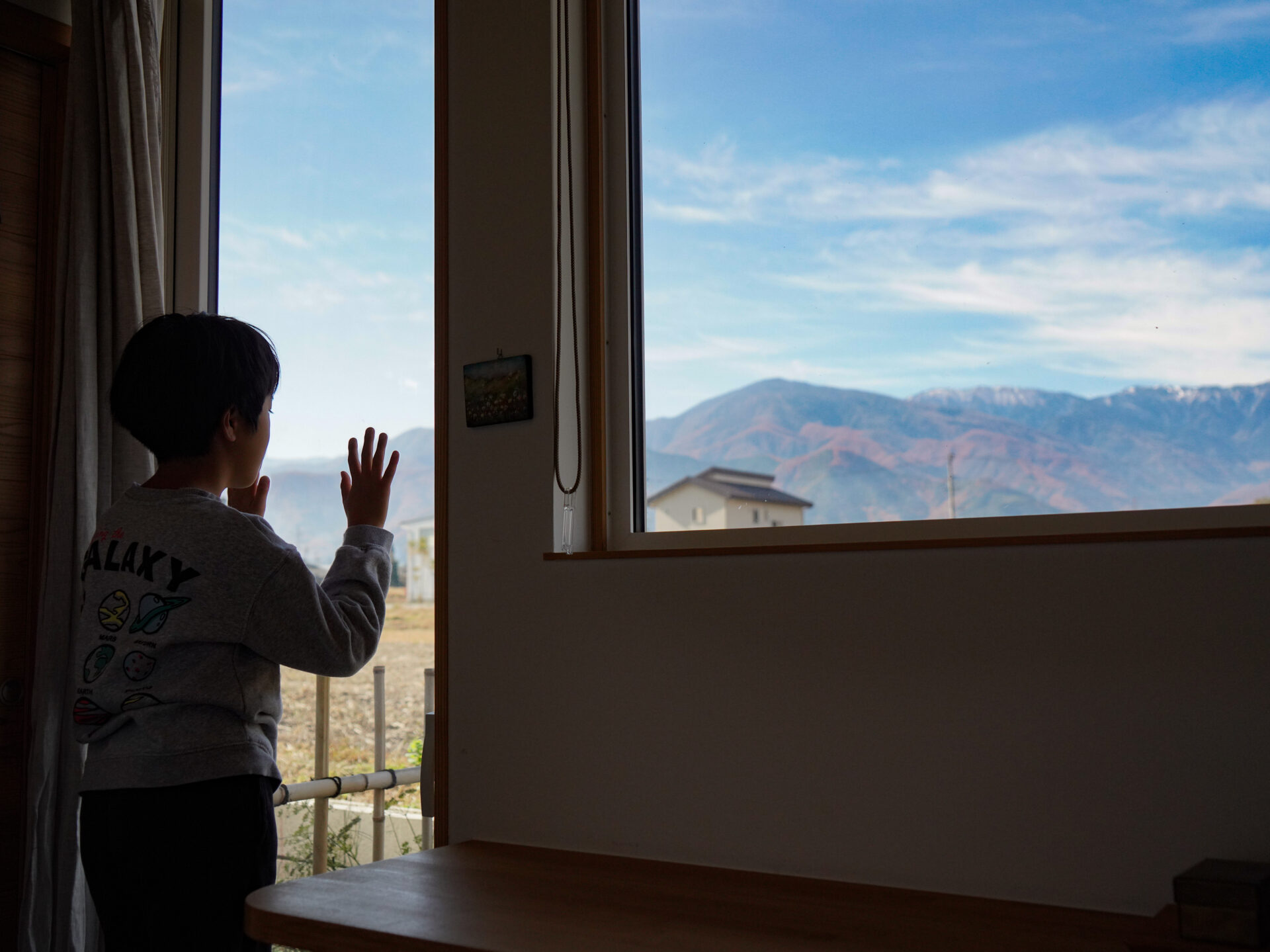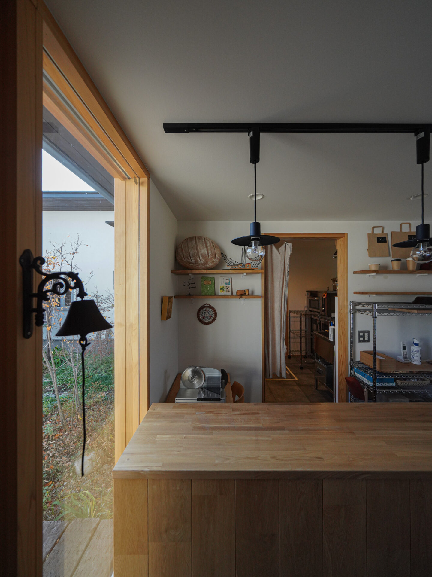 東京から中信エリアに移住し、夫婦で思い描いていたパン屋を開いたNさん。店のイートイン・スペースからも、ダイニングの大きな窓からも、四季折々に表情を変える田園風景と北アルプスの山々が広がります。