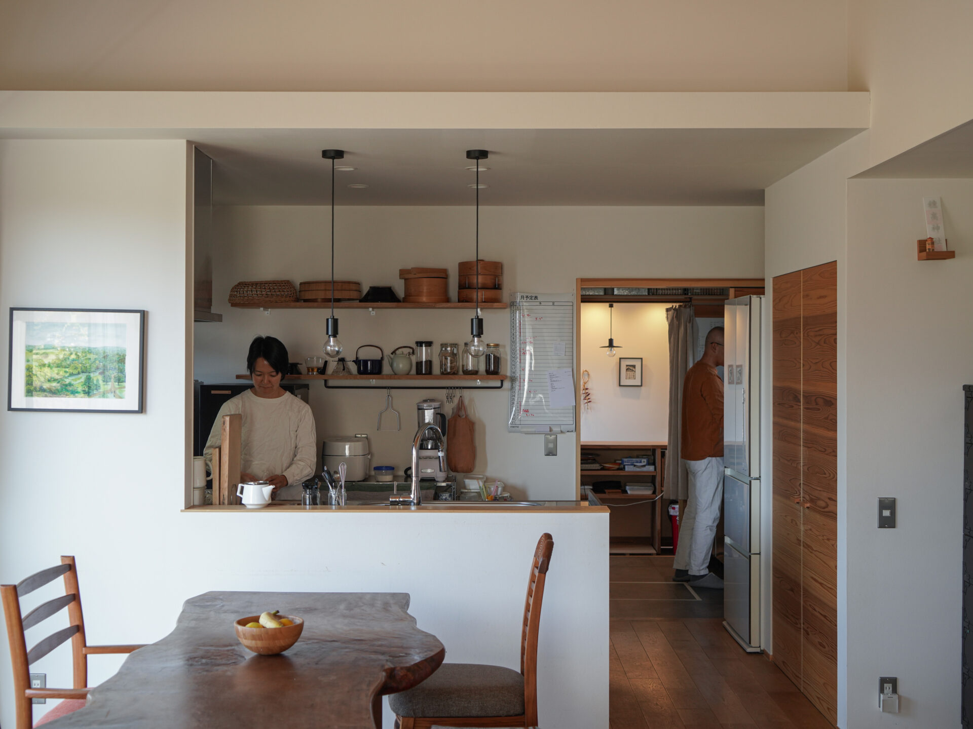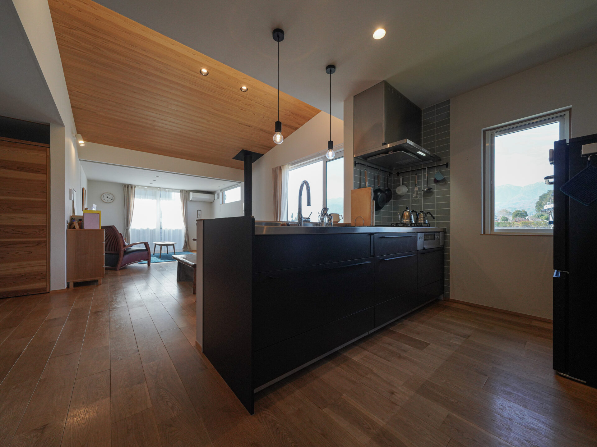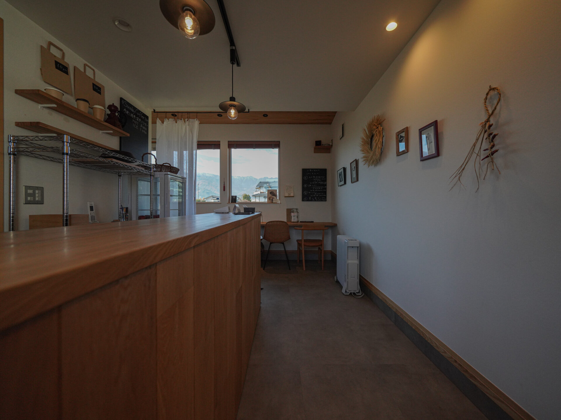 →北アルプスを望む開放的な暮らし。店舗と住居の動線を分けること、素材感を生かす空間づくりを心がけました。